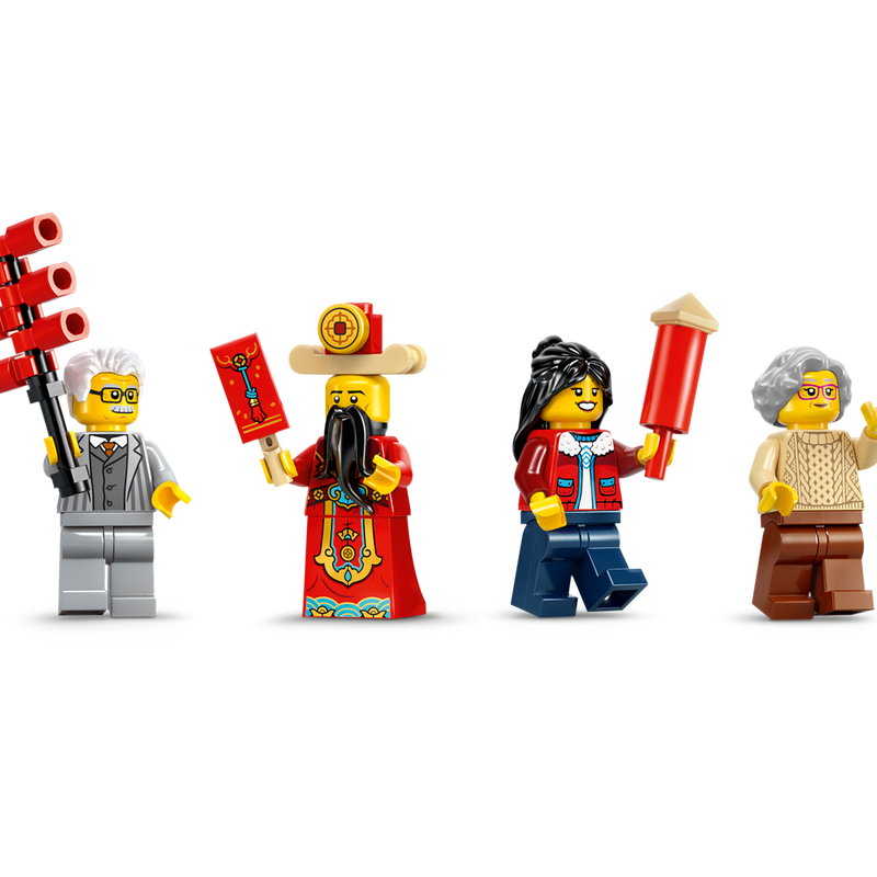 این ست شامل شش مینیفیگور است: خدای بخت و اقبال (God of Fortune)، دو پدربزرگ و مادربزرگ، یک فرد بزرگسال و دو کودک، که امکان بازسازی صحنههای جشن و نقشآفرینی خانوادگی را فراهم میکنند.