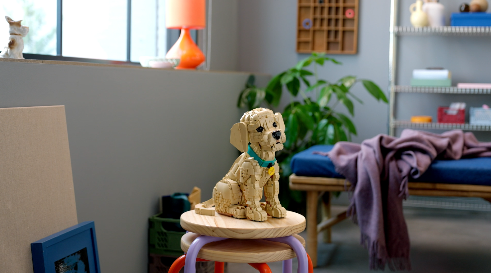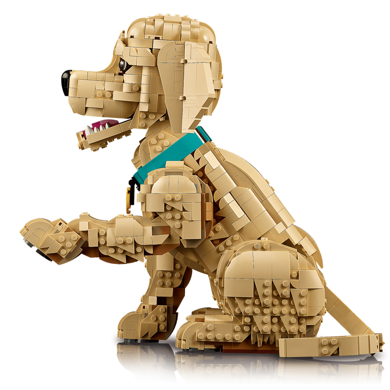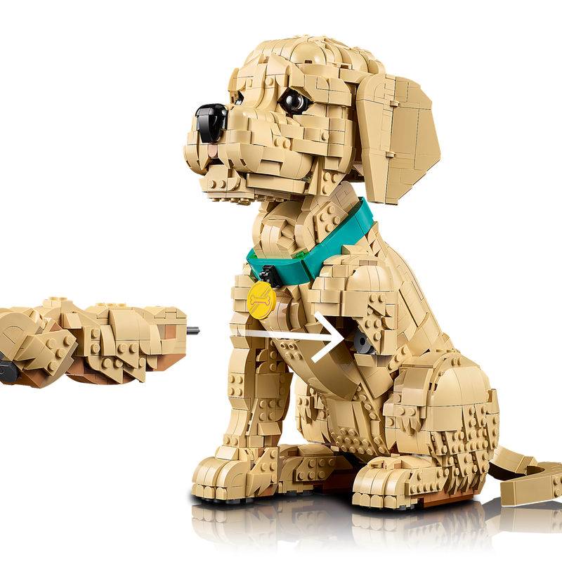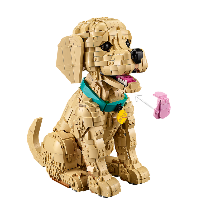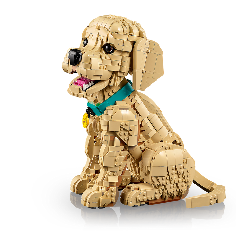 ست لگو سگ گلدن ۱۱۳۸۴ یک ست جذاب و پر جزئیات برای بزرگسالان است که طراحی آن بر بازسازی یک تولهسگ گلدن رتریور تمرکز دارد. این ست با فرم سهبعدی، حالتپذیری بالا و جزئیات ظریف، تجربهای گرم و دلنشین از ساخت ایجاد میکند و در عین حال، نتیجهی نهایی آن یک دیسپلی مدل دوستداشتنی برای هر فضا به حساب میآید. طراحان این ست، ویژگیهای ظاهری نژاد گلدن رتریور را بهشکلی قابلتشخیص و وفادار بازآفرینی کردهاند.
