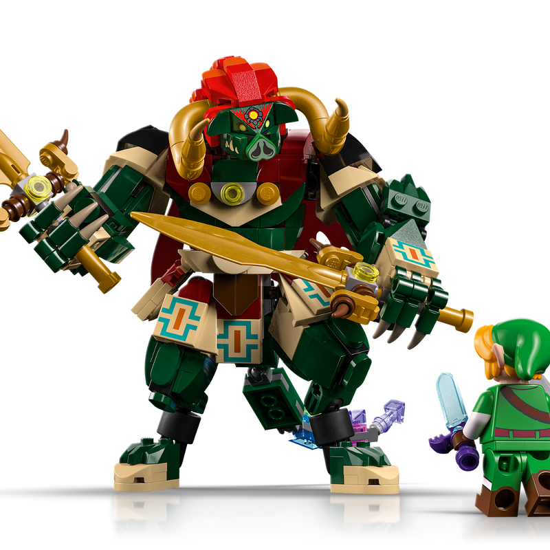 ست لگو افسانه زلدا ۷۷۰۹۳ مینی‌فیگورهای لینک، زلدا و گانوندورف را در کنار یک فیگور بزرگ بریک‌بیلت از گنون ارائه می‌دهد. یک سازه‌ی شفاف برای پریِ ناوی هم در نظر گرفته شده تا حضور او در صحنه مشخص باشد. در بخش اکسسوری‌ها، آیتم‌های شناخته‌شده‌ی بازی قرار دارند؛ مستر سورد، چکش مگاتون و هایلیان شیلد در کنار دو شنل پارچه‌ای و دو شمشیر برای گنون، ترکیب کاملی از شخصیت‌ها و تجهیزات را شکل می‌دهند. این مجموعه نمایش نهایی را کامل‌تر می‌کند و حس صحنه‌ی پایانی بازی را منتقل می‌کند.