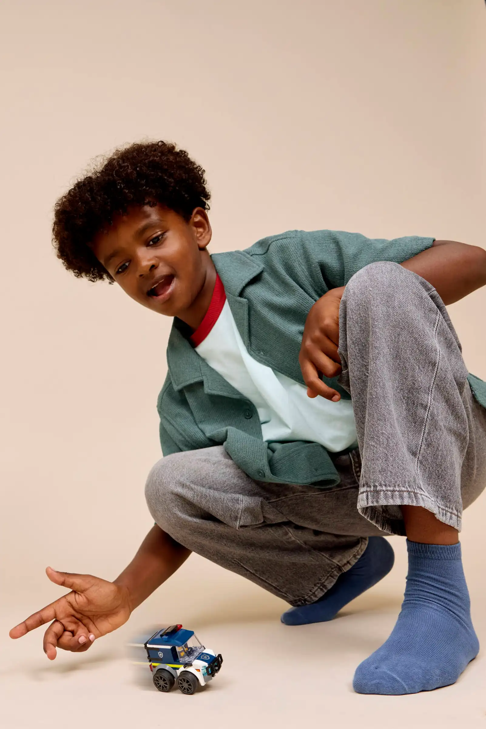 کودک ماشین پلیس را هل میدهد، مسیر گشت را انتخاب میکند و مأموریتهای سادهی دستگیری را اجرا میکند. همچنین مینیفیگور پلیس را جابهجا میکند و نقشها را تغییر میدهد. به این ترتیب، هماهنگی دست و چشم تقویت میشود و تخیل کودک در قالب داستانهای شهری رشد میکند.