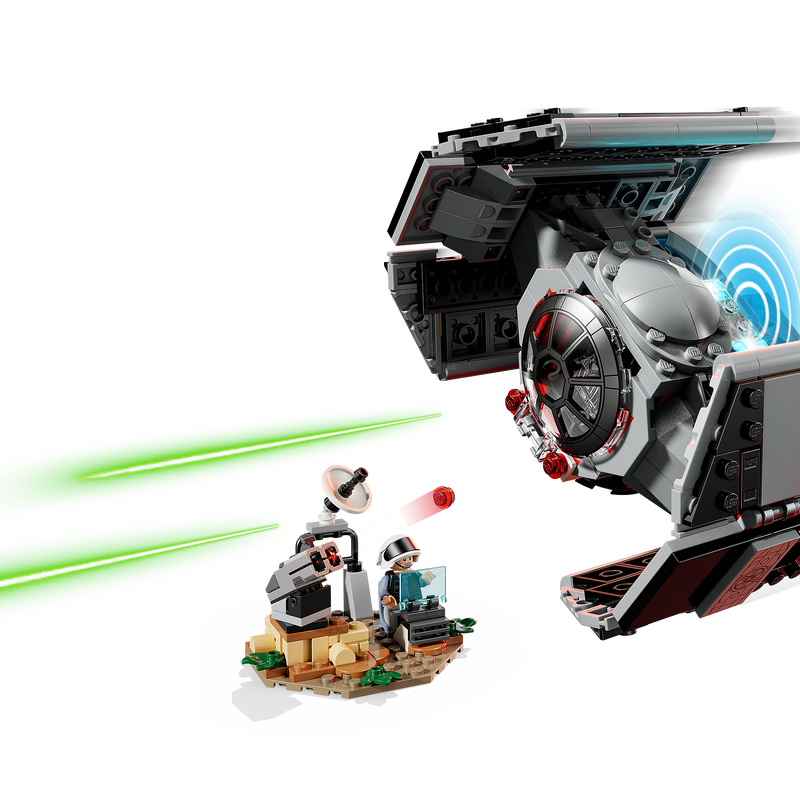 در ست لگو اسمارت پلی ۷۵۴۲۱، SMART Brick روی SMART Tag نصب میشود و با حرکت دادن TIE Fighter، صداهای موتور و نورهای واکنشی فعال میشوند. کودک میتواند شلیک لیزرها را اجرا کند، از حملات پایگاه شورشی جاخالی دهد و سپس وسیله را در ایستگاه سوخت امپریال سوختگیری و تعمیر کند. حضور فیگور SMART دارث ویدر باعث فعال شدن واکنشهای صوتی مرتبط با موقعیتهای مختلف بازی میشود.