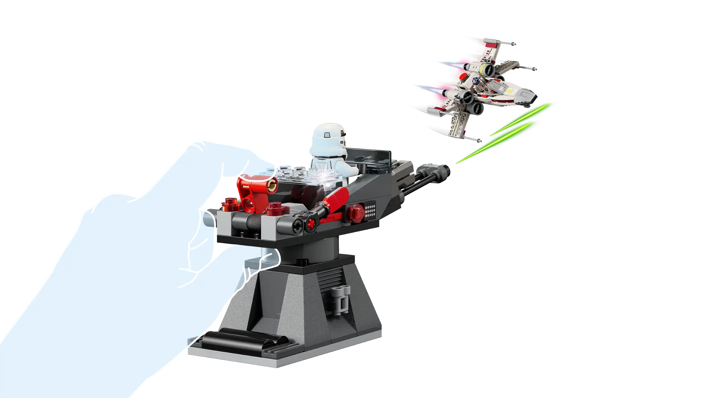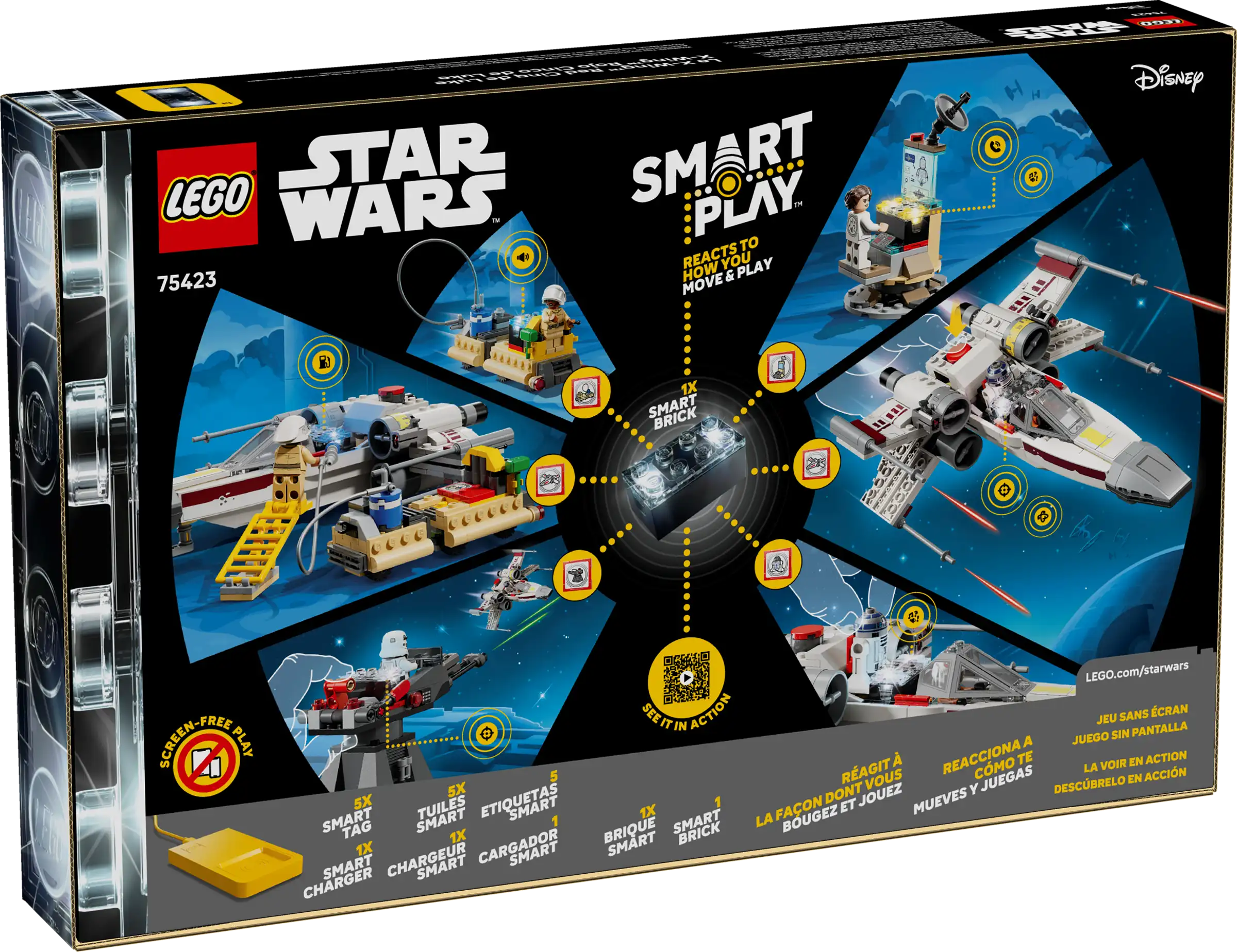 در ست لگو اسمارت پلی استار وارز ۷۵۴۲۳، کودک میتواند ایکس-وینگز را به پرواز درآورد و با حرکت آن، صدای موتور و نورهای واکنشی را فعال کند. شلیک لیزرها، تعامل با برجک امپریال، بررسی ارتباطات در مرکز فرماندهی و عملیات سوختگیری و تعمیر با ترنسپورتر، همگی بهصورت واکنشی اجرا میشوند. طراحی ست بهگونهای است که بازی هم بهصورت انفرادی و هم در تعامل با دوستان امکانپذیر باشد.