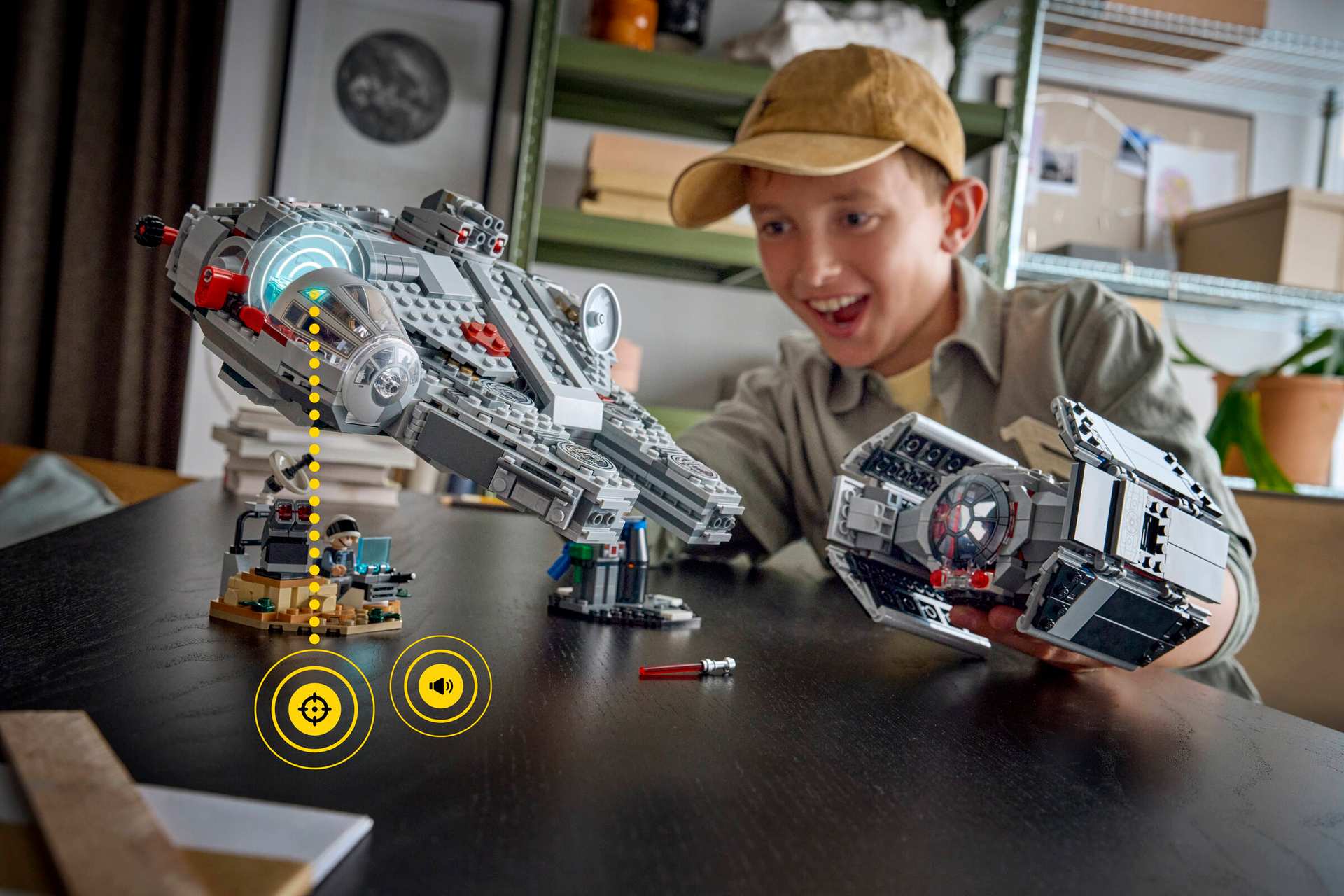 این ست به‌عنوان یک ست سازگار با لگو اسمارت پلی طراحی شده و با اضافه‌کردن اسمارت بریک از ست‌های آل-این-وان (فروش جداگانه)، بازی واکنشی فعال می‌شود. اسمارت تگ‌ها و اسمارت مینی فیگورها باعث می‌شوند اسمارت بریک نسبت به حرکت و تعامل واکنش نشان دهد و صداها و نورهای پویا مانند پرش هایپردرایو، درگیری‌های لیزری، انفجار سوخت و برخورد لایت سیبر اجرا شوند. این سیستم بدون نیاز به صفحه‌نمایش طراحی می‌شود و تمرکز خود را بر بازی فیزیکی و تعاملی حفظ می‌کند.