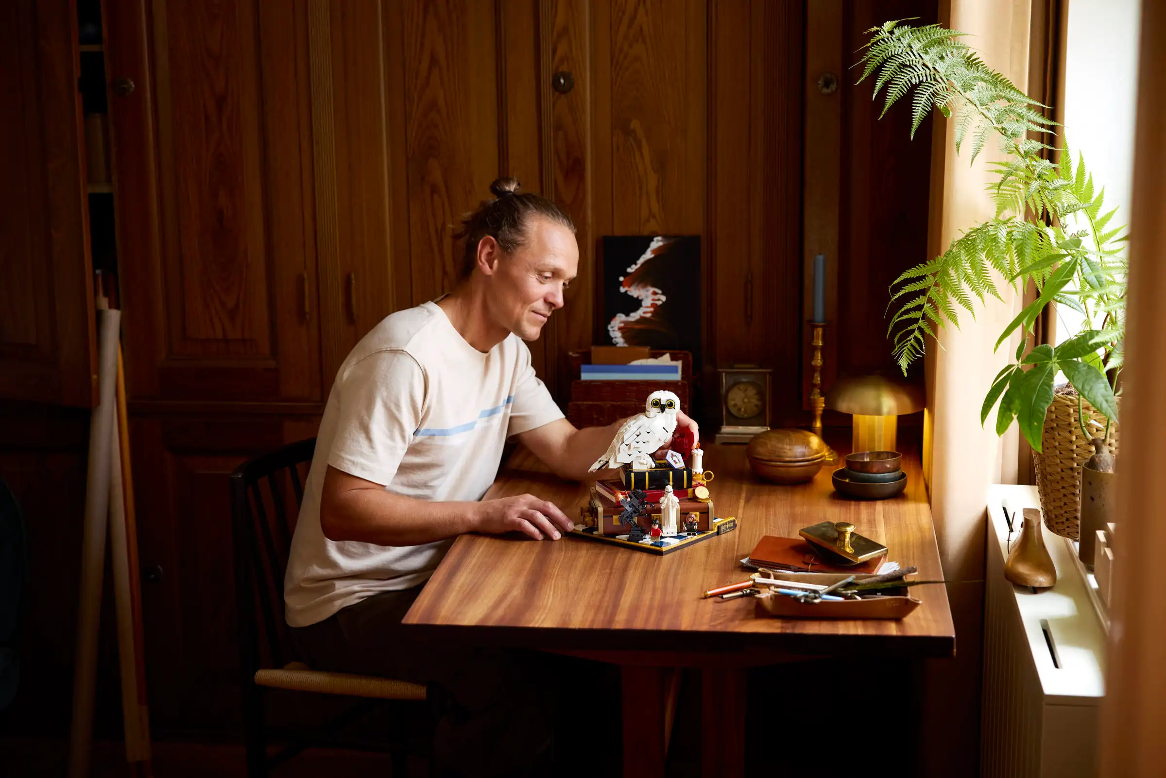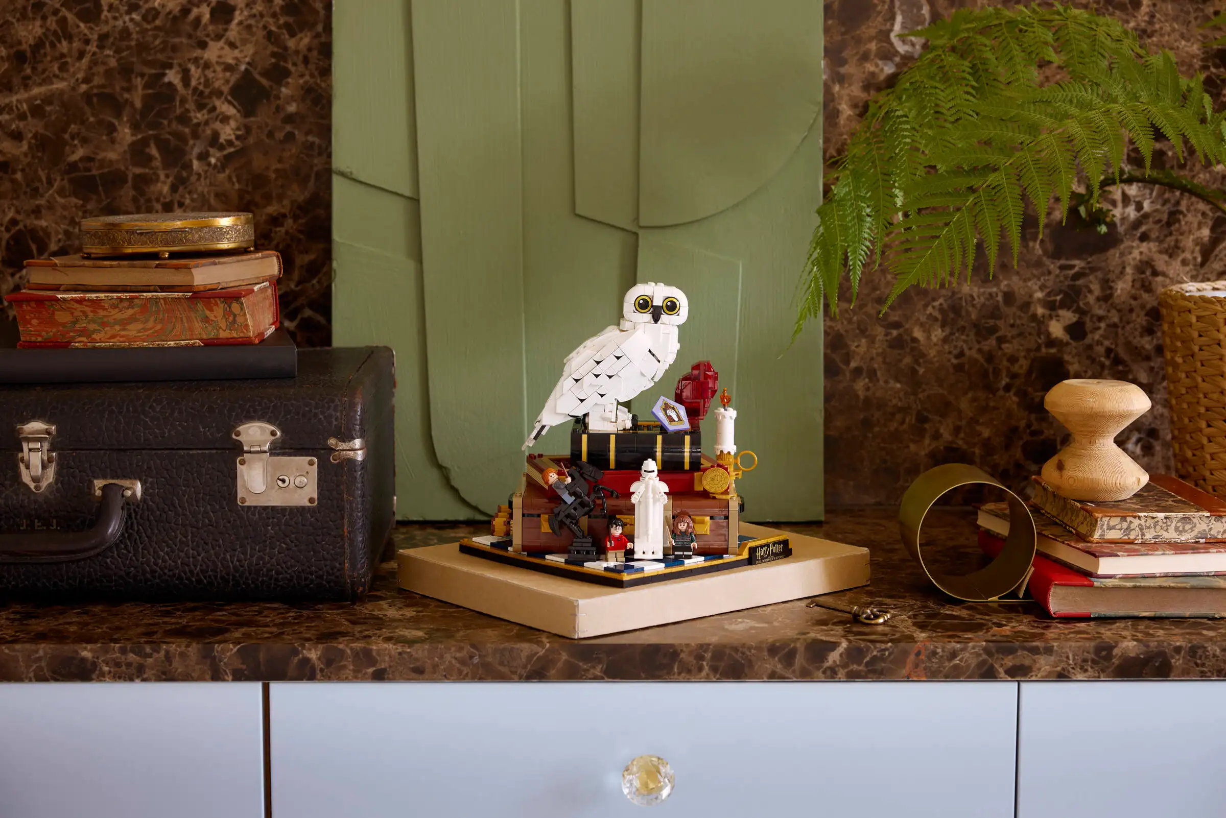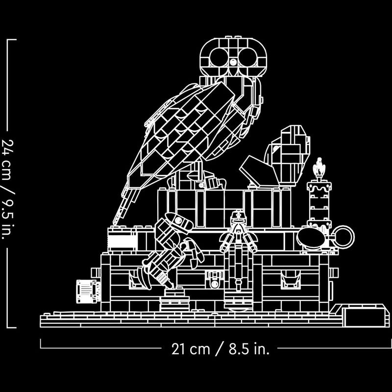 ست چندین صحنهی کوچک را در کنار یک چیدمان مرکزی ترکیب میکند. هدویگ روی چمدان هری پاتر در کنار سنگ جادو قرار میگیرد و صحنههای مایکرو اسکیل در اطراف او چیدمان میشوند. سه مینیفیگور اصلی نیز امکان قرارگیری در نقاط مختلف سازه را دارند و چیدمان نهایی را برای نمایش کاملتر میکنند.