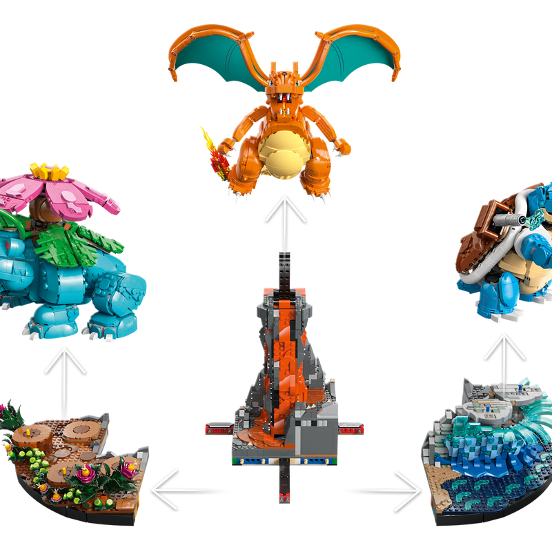 ست لگو پوکمون ۷۲۱۵۳ یک تجربه‌ی ساخت طولانی، دقیق و کاملاً درگیرکننده ارائه می‌دهد. هر پوکمون به‌صورت یک سازه‌ی مستقل شکل می‌گیرد و در عین حال می‌توان آن‌ها را روی پایه‌های متصل‌شونده ترکیب کرد. ونوسور با تاک‌های متحرک و پاهای قابل تنظیم ساخته می‌شود، بلاستویز سر، بازوها و توپ‌های آب متحرک دارد و چارizard با بال‌ها، پاها، بازوها و سر قابل‌حالت‌دهی، بیشترین آزادی را در نمایش ارائه می‌دهد. علاوه بر این، تنوع بیوم‌ها باعث می‌شود هر شخصیت هویت بصری مشخصی داشته باشد و در کنار هم، یک صحنه‌ی نمایشی منسجم شکل بگیرد.